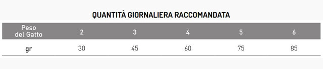 Istruzioni per l’uso: si raccomanda di richiedere il parere di un veterinario prima dell’uso. Somministrare i quantitativi indicati riportati in tabella in base al peso del cane, come unica fonte di cibo.