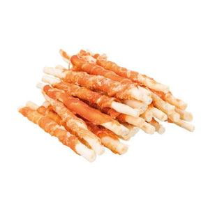 Bastoncini da masticare gusto pollo in pelle di bovino con pelle spessa per una masticazione più duratura.