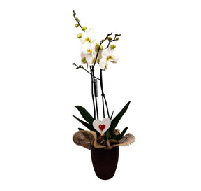 Una bellissima pianta di orchidea phalaenopsis bianca a due rami (h, 60cm circa) in vaso. L'orchidea si distingue per la bellezza dei suoi fiori e la sua eleganza, è ideale per chi cerca un pensiero floreale raffinato che arriva dritto al cuore!