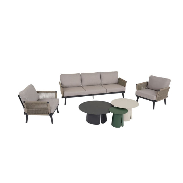 Trasforma il tuo giardino, terrazzo o veranda in un’oasi di stile con il salotto da esterno Antony, composto da un divano a 3 posti, due poltrone e tre tavolini rotondi di diverse dimensioni. Il design essenziale e contemporaneo, con linee pulite e forme geometriche, lo rende perfetto per ambienti eleganti e moderni.