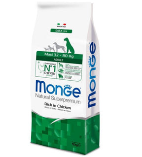 Monge Natural Superpremium Maxi Adult Kroketten mit Huhn sind ein Alleinfuttermittel für Hunde großer Rassen.