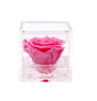 Der zu öffnende Plexiglaswürfel mit Glaseffekt enthält eine hochwertig stabilisierte Rose, die mit einem zarten ätherischen Öl parfümiert und in ein Wassereffektgel getaucht ist.